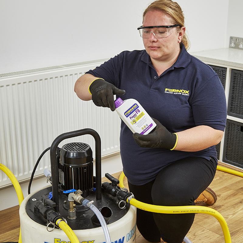 Ajouter le produit dans le circuit par le collecteur ou un point de dosage approprié. Faire circuler pendant 1 à 2 heures à température normale, puis rincer soigneusement jusqu’à ce que l’eau soit claire. Remplir le système avec un produit de protection comme le Fernox Protector F1 pour prévenir corrosion et entartrage.